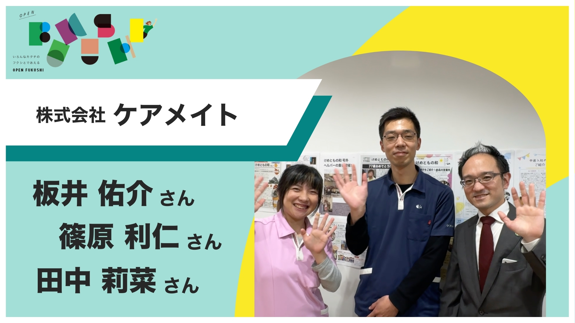 2025.03.31 「ごちゃまぜの福祉」とこれからの福祉の可能性 - 社会福祉法人みねやま福祉会 西田さん 清水さん - 2025.03.31 福祉の仕事って?どんな人が向いていそう?- 社会福祉法人みねやま福祉会 西田さん 清水さん - 2025.03.31 介護の仕事は経済を支えている?利用者家族の生活や経済も支えている大事なしごと - 社会福祉法人新生寿会きのこ荘 原田さん 山岡さん 2025.03.31 地域で暮らせるようになるための支援って?救護施設の仕事内容とやりがいについて - 社会福祉法人みなと寮 武山さん 中谷さん - 2025.03.31 世の中の変化にどう対応してる?!持続的なサービス提供のための介護事業経営と取組みについて - 株式会社ケアメイト 板井さん 篠原さん 田中さん - さらに読み込む LINEで情報をGET! OPEN FUKUSHIを通して少しでもフクシが気になった方は、まずはOPEN FUKUSHIの公式LINEにご登録ください!もう少し福祉を知ることのできるコンテンツやセミナー・ボランティア・イベントの情報を配信します!お問い合わせもLINEからお願いします。 お友達登録 こちらの動画は学生会員限定となります。ログインor会員登録をお願いします。 ログイン 会員登録 <学校関係者の方へ>授業で動画をご使用になりたい方はこちら お問い合わせフォーム
